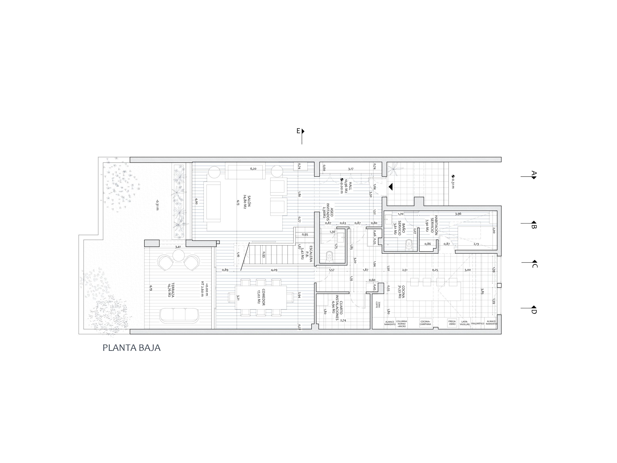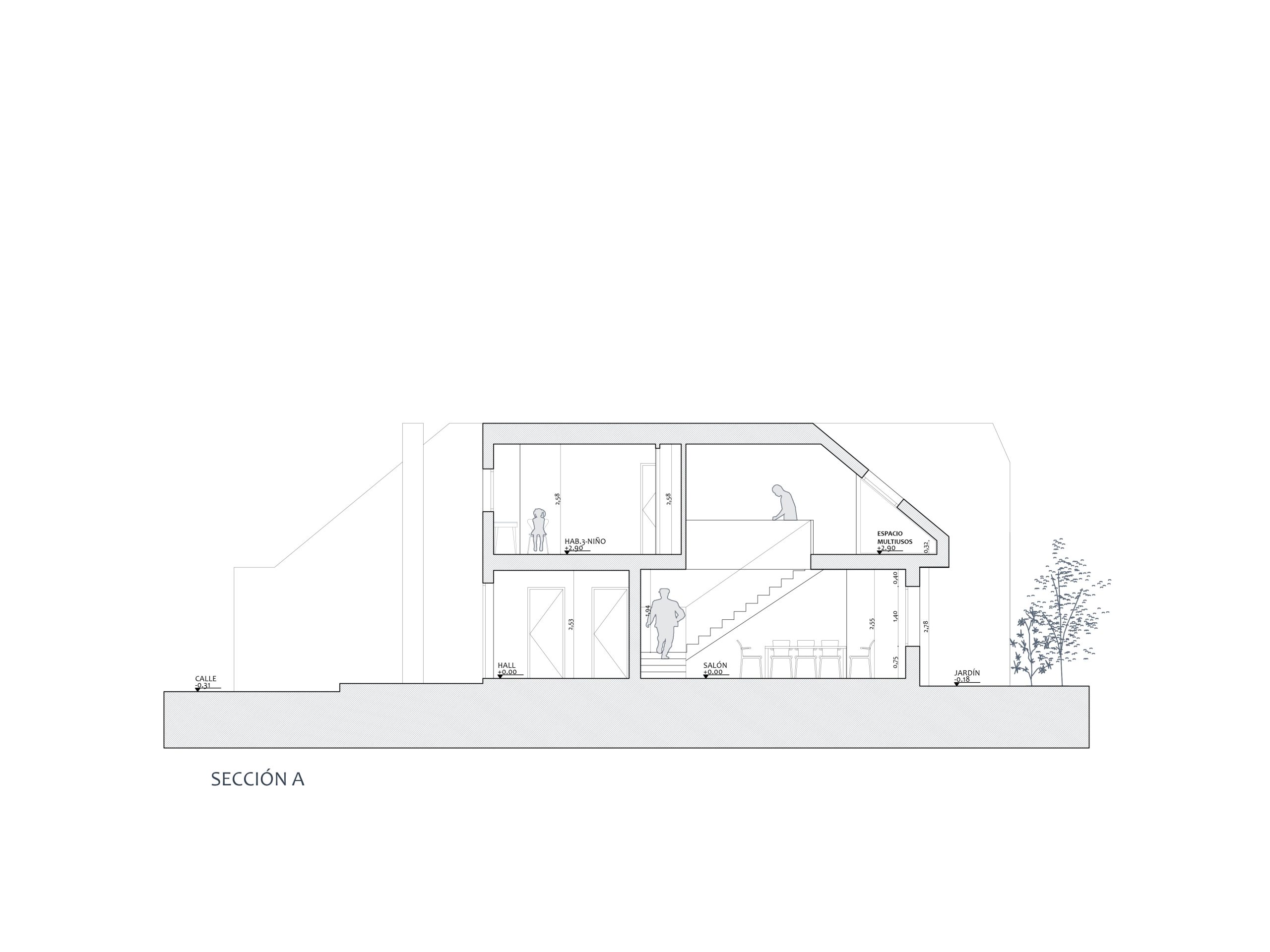 Para la reforma integral de esta vivienda unifamiliar adosada de dos plantas, de 1980, se plantearon en el exterior una serie de sutiles cambios en la volumetría que, sin alterar la imagen de conjunto de la hilera de viviendas -que se ha venido preservando desde la construcción original- , permitieran un mejor aprovechamiento de los espacios vivideros bajo la cubierta, en ambas plantas, muy condicionados por las pendientes de los faldones; así como dotar a la cocina de unas dimensiones y una funcionalidad adecuadas a las necesidades actuales de los usuarios de la vivienda -potenciando su uso como office, comedor de diario etc.- , mediante la incorporación a la vivienda del patio contiguo de la parte frontal, que venía siendo infrautilizado.